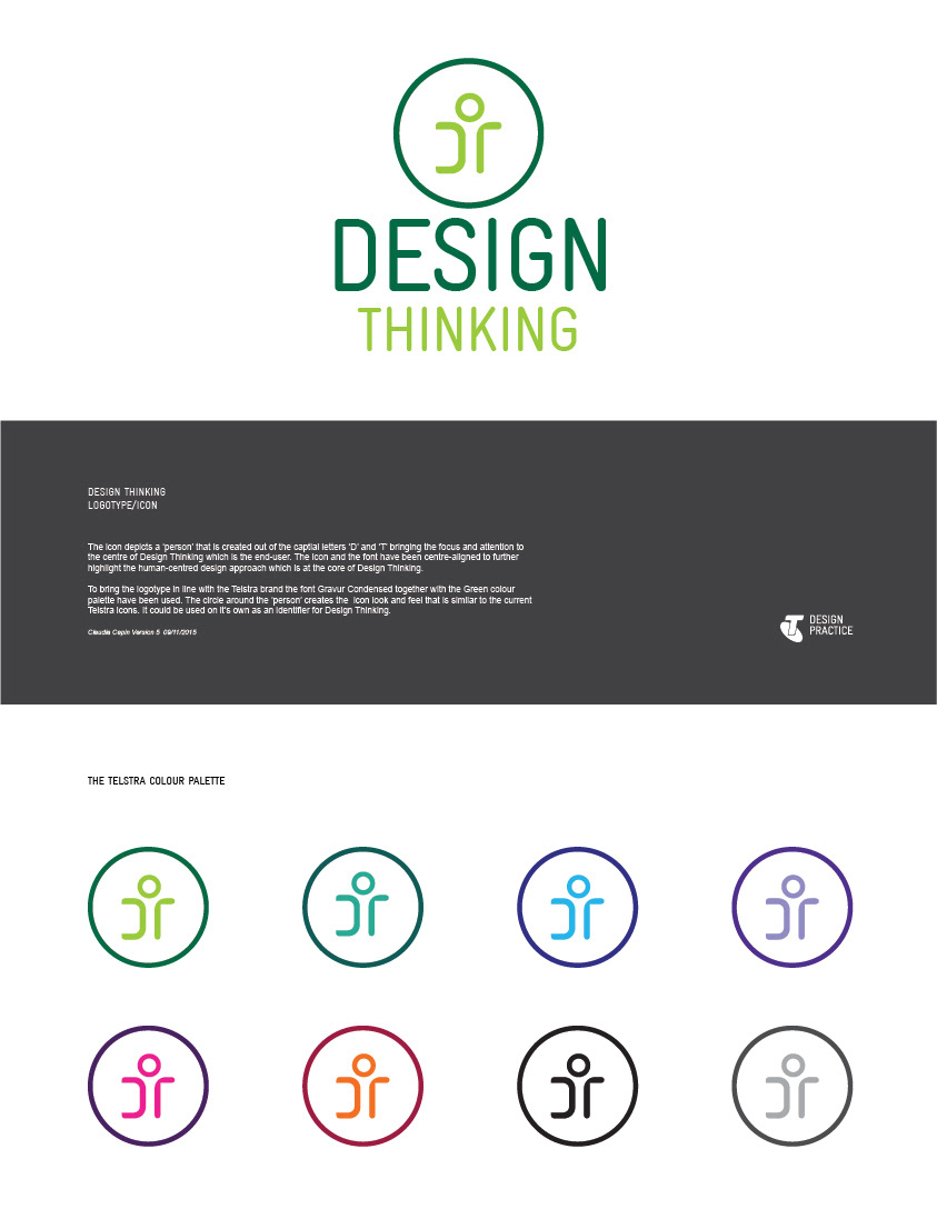 The task was to design a logotype/icon for the Design Thinking collateral (brochures, presentations, training) that was used by the Telstra Design Practice.