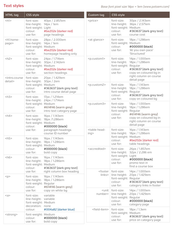 The digital style guide was created to accompany the web development of Open Training Institute